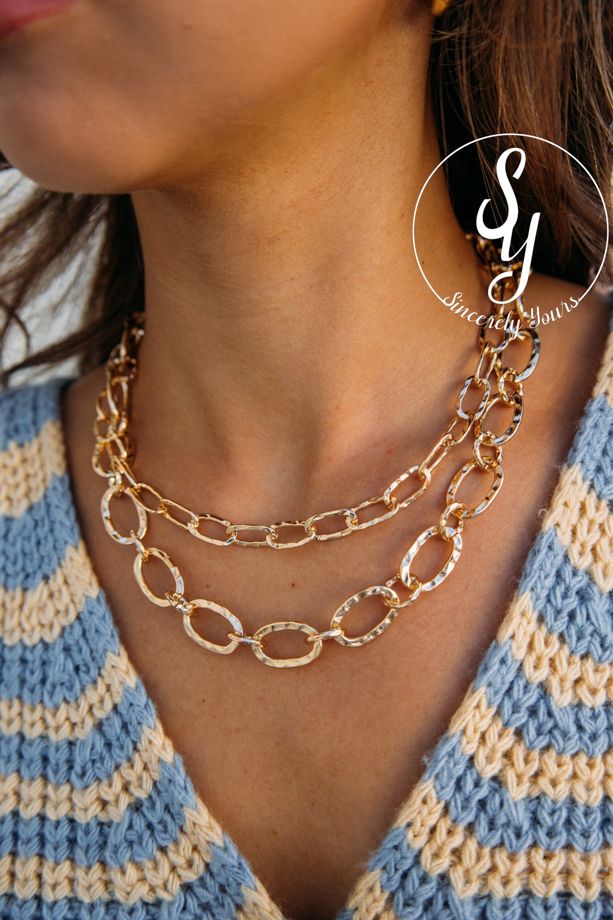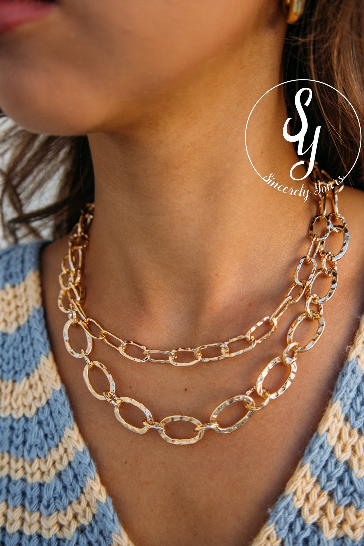Effortlessly elevate any outfit with this stunning gold chain necklace. Its timeless design pairs beautifully with everything from casual basics to your favorite statement pieces, making it the perfect everyday accessory. Whether you're dressing up for a special occasion or keeping it simple, this versatile necklace adds just the right touch of sparkle and sophistication to complete your look.