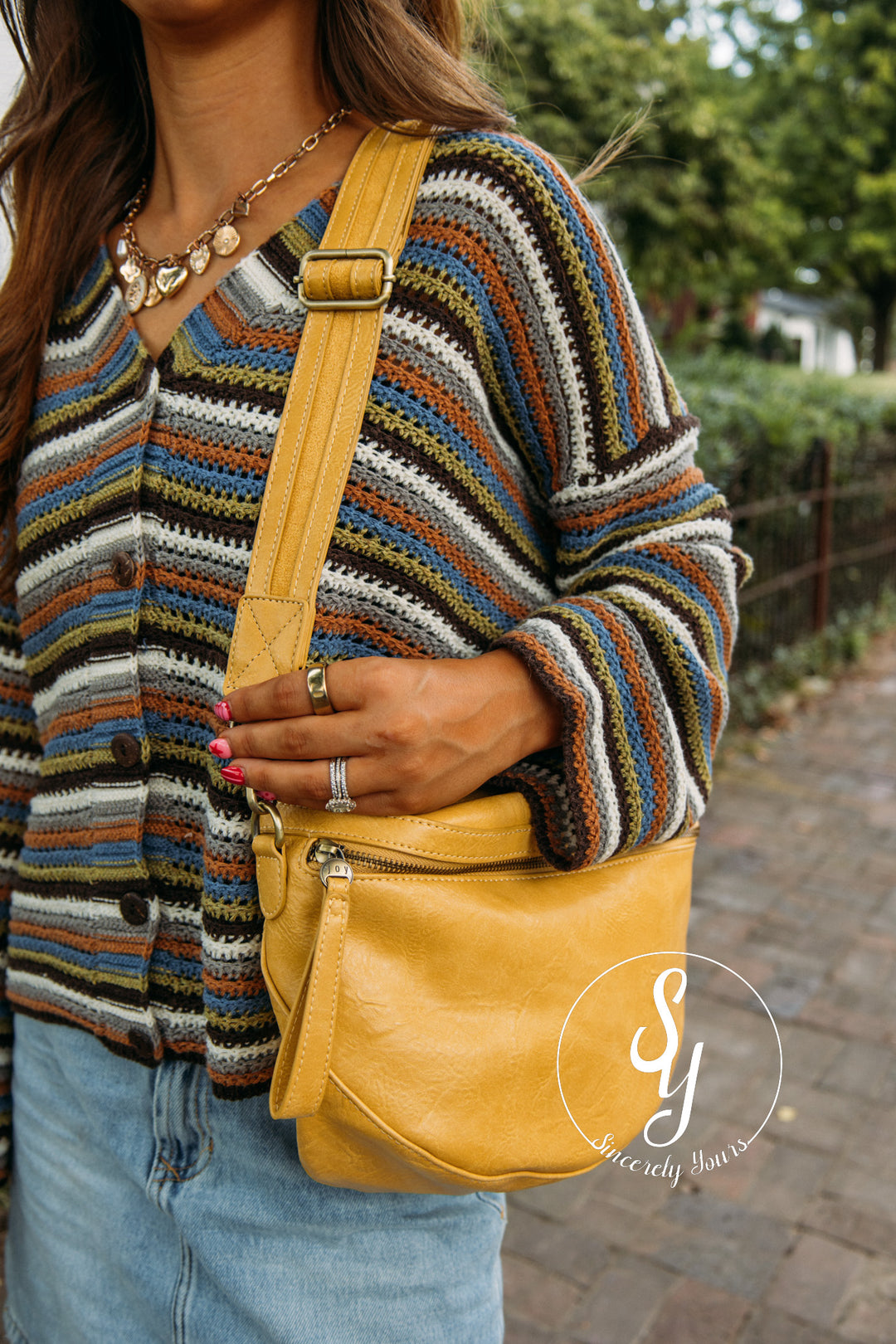 Layla Faux Suede Whipstitch Crossbody -Brown
