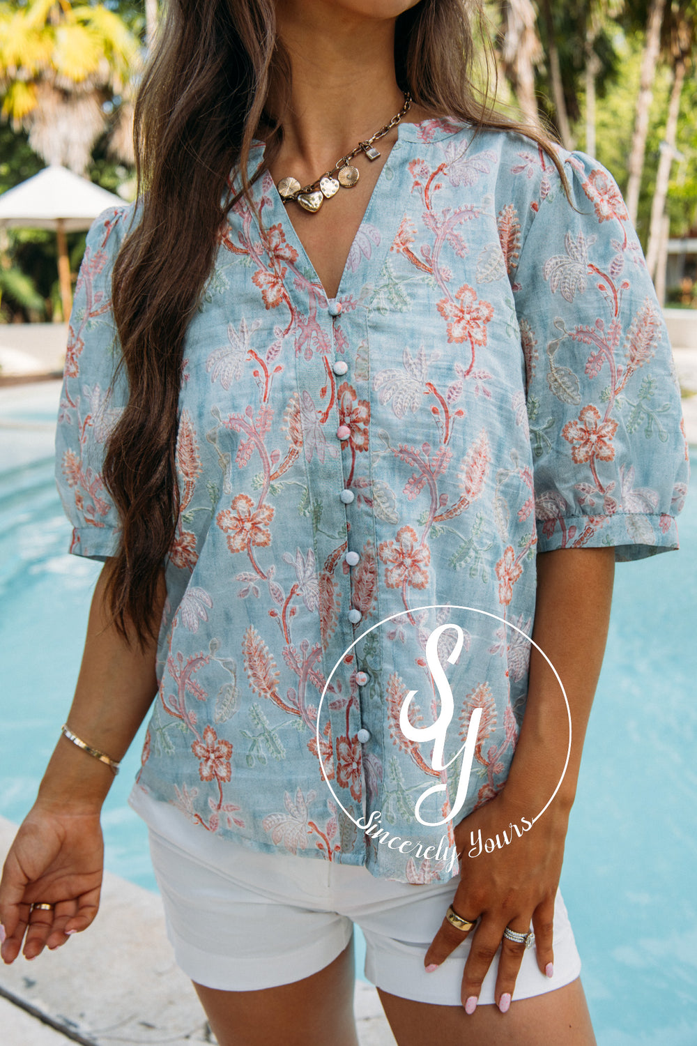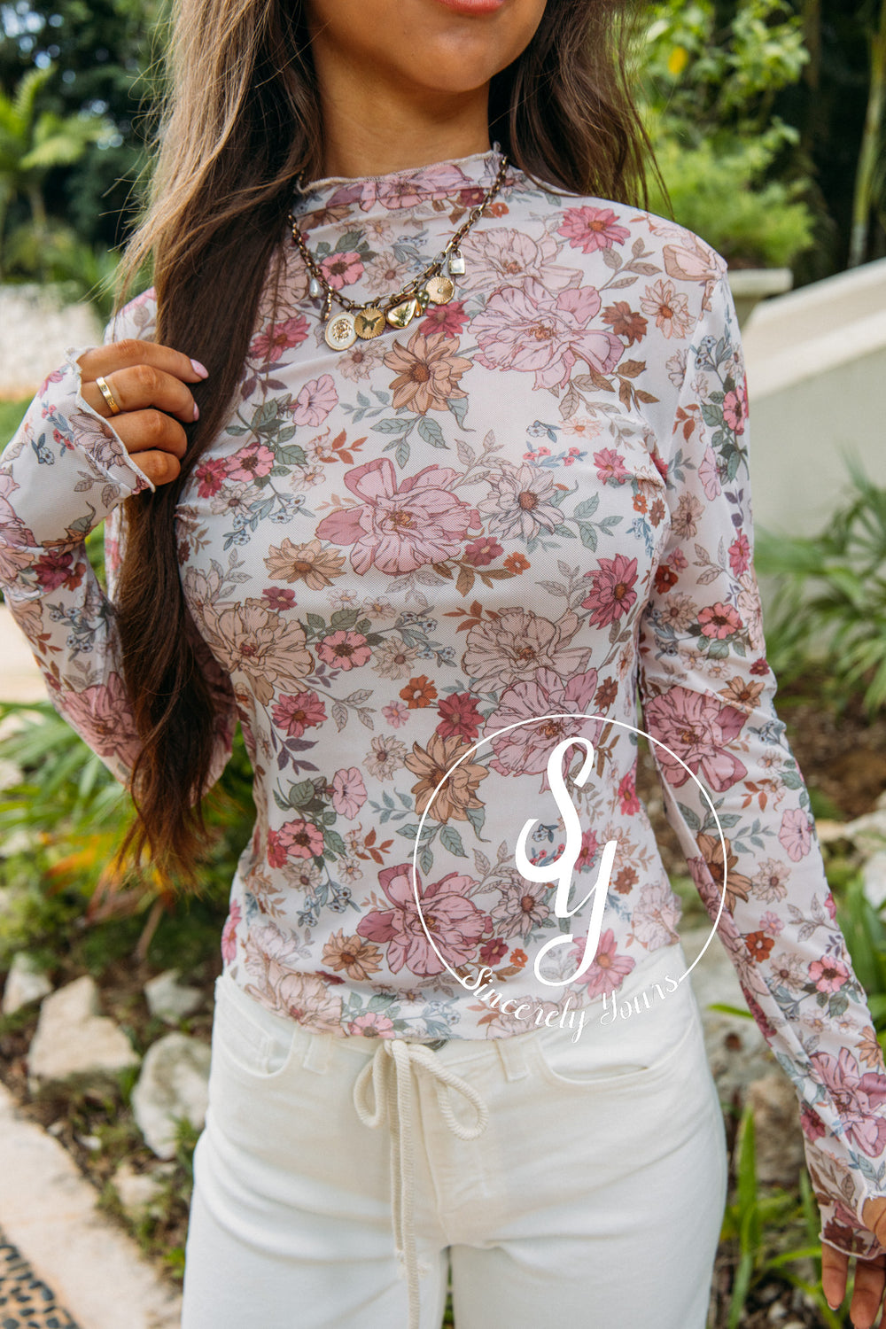 Mira Flores Top - Powder Almond