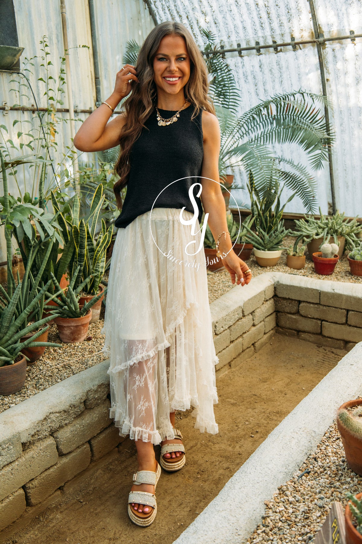 The Countryside Skirt in Cream is here to elevate your countryside style! This tiered lace midi skirt is as unique and fun as you are! Dress it up for a look that is totally you!