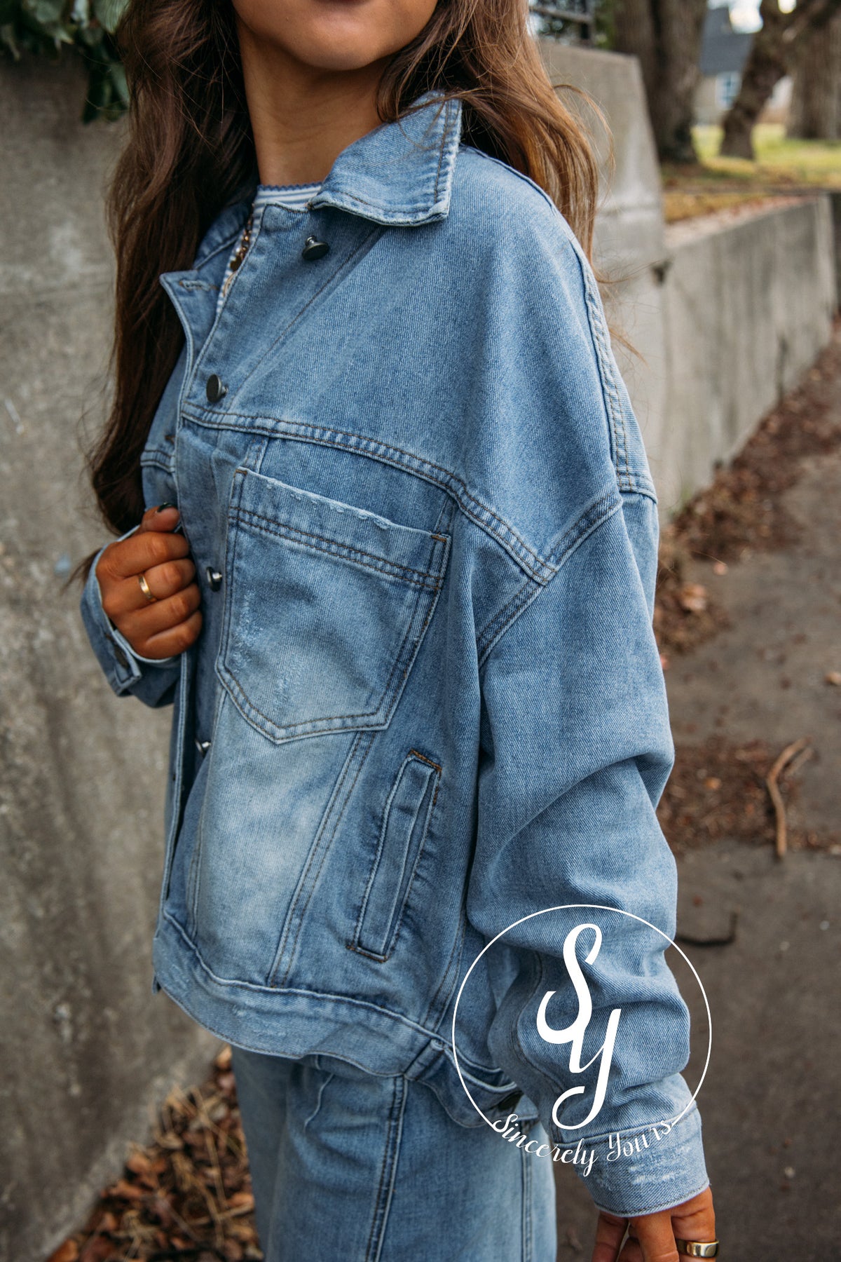 Oversized denim never goes out of style, and this jacket proves why. With its relaxed, roomy silhouette, it's the perfect layering piece that works with everything from dresses to jeans. The timeless denim construction means you'll reach for it season after season, while the generous fit keeps things comfortable and effortlessly cool. A wardrobe essential that's equal parts cute and versatile.