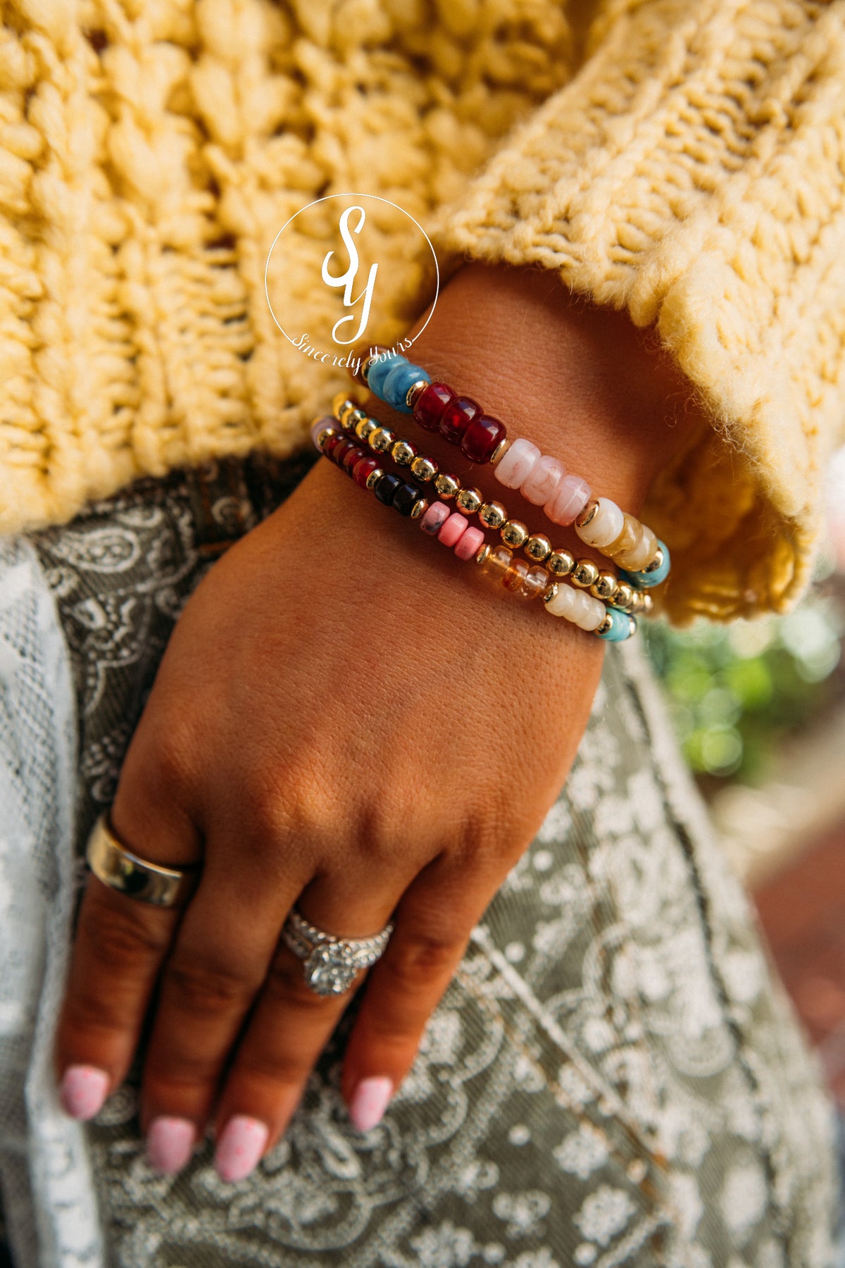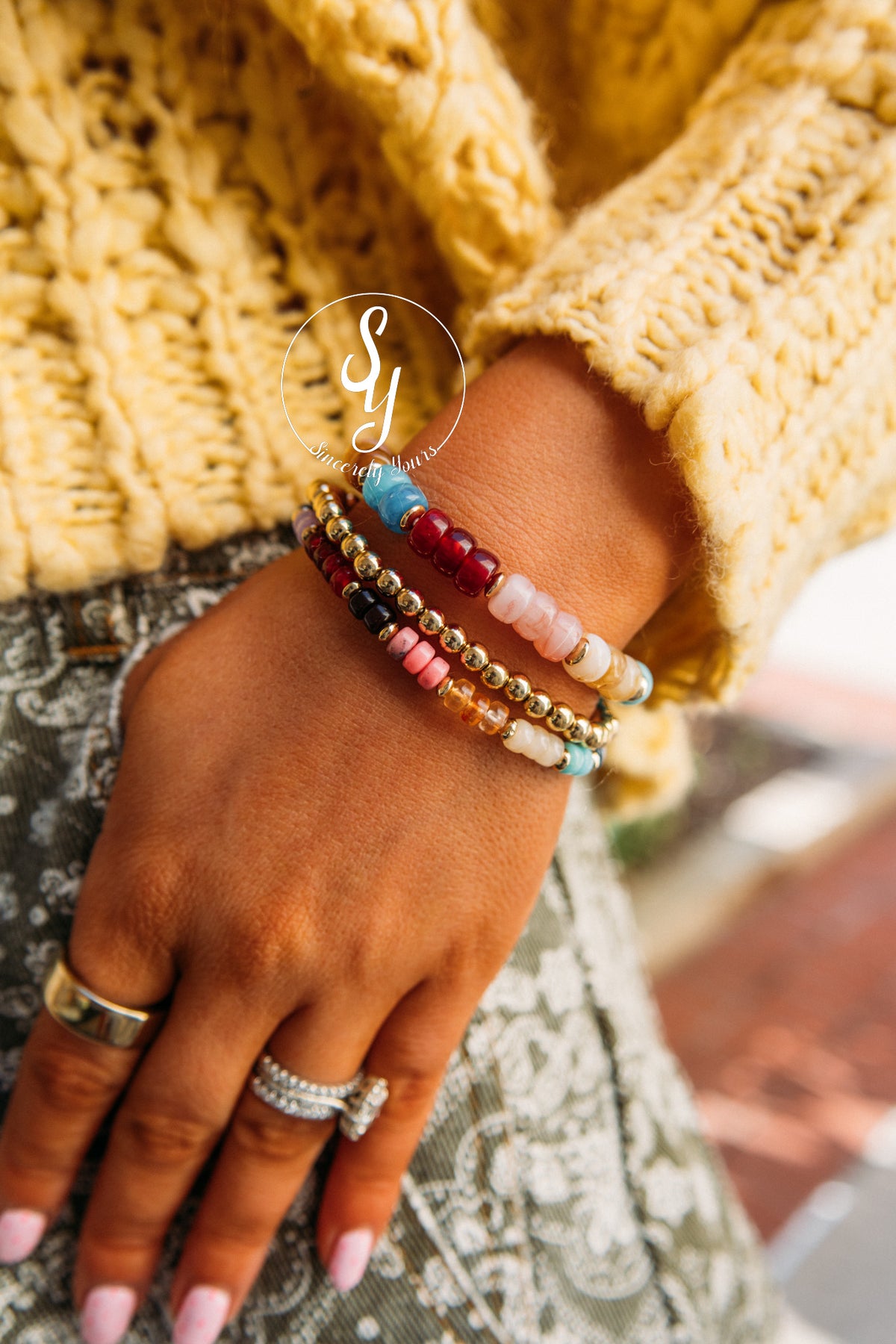 Slip on a splash of color and natural charm with our Bay Stone Beaded Bracelets. Each bracelet features carefully selected stone beads that bring earthy elegance to your wrist. Whether you're stacking them for a boho vibe or wearing one solo, these versatile pieces add personality to any outfit. Perfect for everyday wear or as a thoughtful gift, they're the kind of accessory that makes you smile every time you catch a glimpse of your wrist.