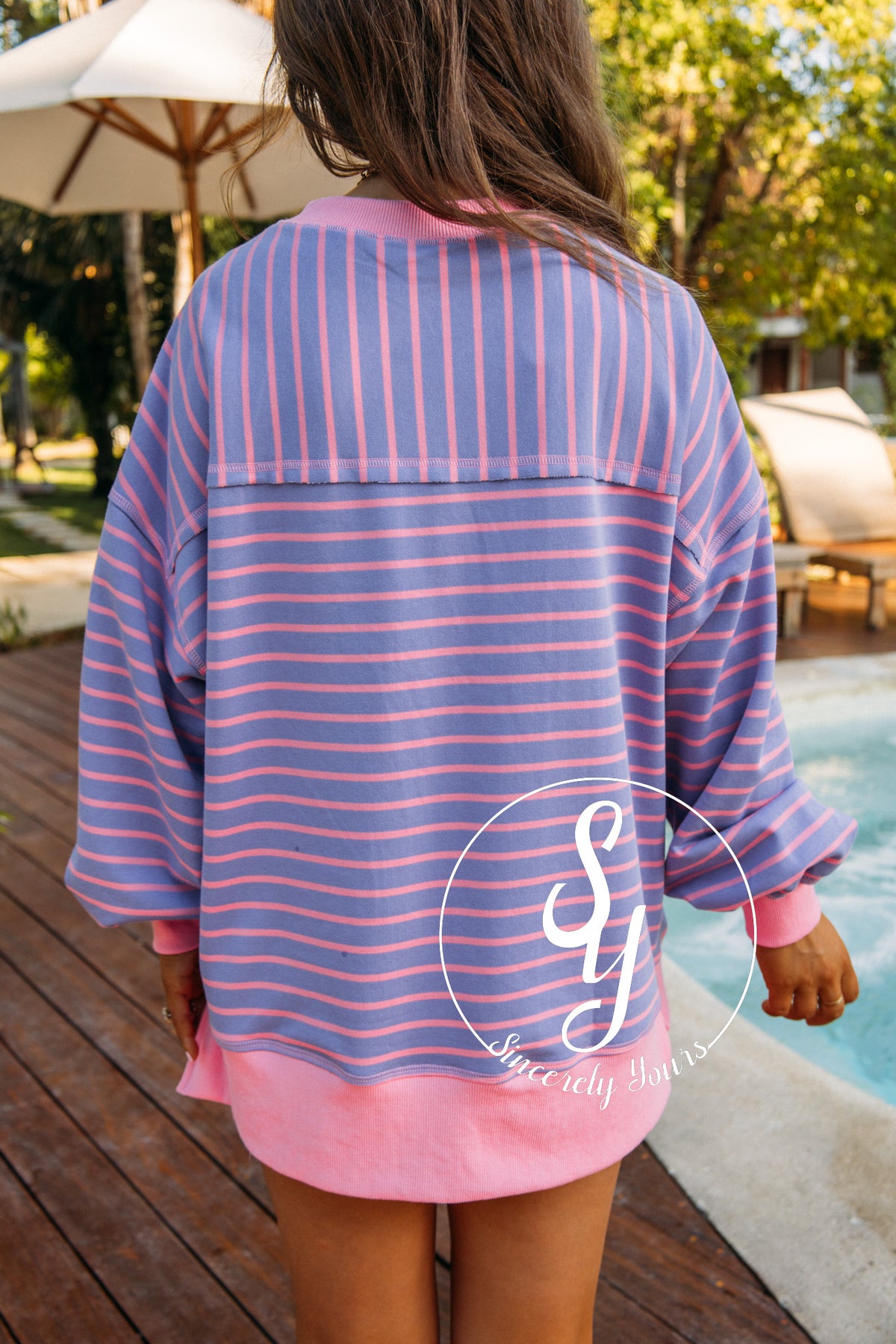 Bring cozy cabin vibes to your everyday wardrobe with this charming striped top. The perfect blend of lavender and pink creates a look that's both cheerful and versatile—pair it with jeans for a casual weekend vibe or dress it up for something a little more polished. Soft, comfortable, and endlessly stylish, this top is your new go-to for effortless charm.