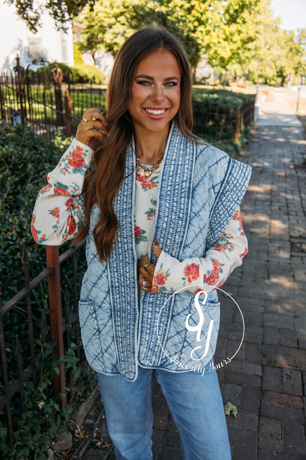 Add a fun twist to your outfit with the Cedar Creek Vest in Denim! This quilted design channels cool, casual vibes while keeping you cozy. It’s the perfect layering piece to brighten up your look with a stylish denim flair you’ll want to live in.