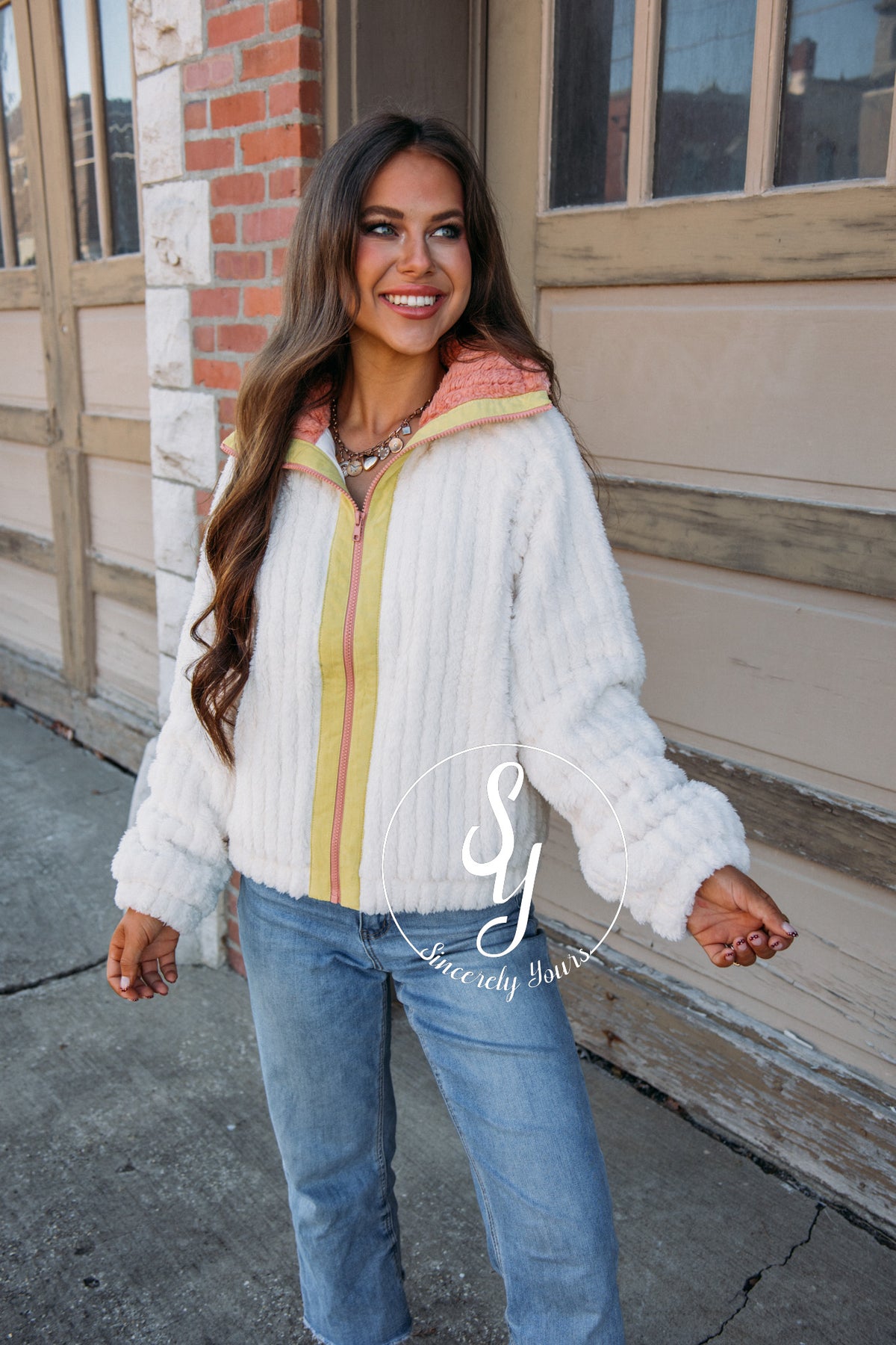 Wrap yourself in pure comfort with this Feeling Extra Cozy Jacket in soft cream. The neutral base is the perfect canvas for a surprise pop of color that adds personality without overwhelming your look. Whether you're layering for chilly days or throwing it on for a casual vibe, this jacket delivers the coziness factor you're craving. It's that go-to piece that makes everything feel a little more put-together and a whole lot more comfortable.