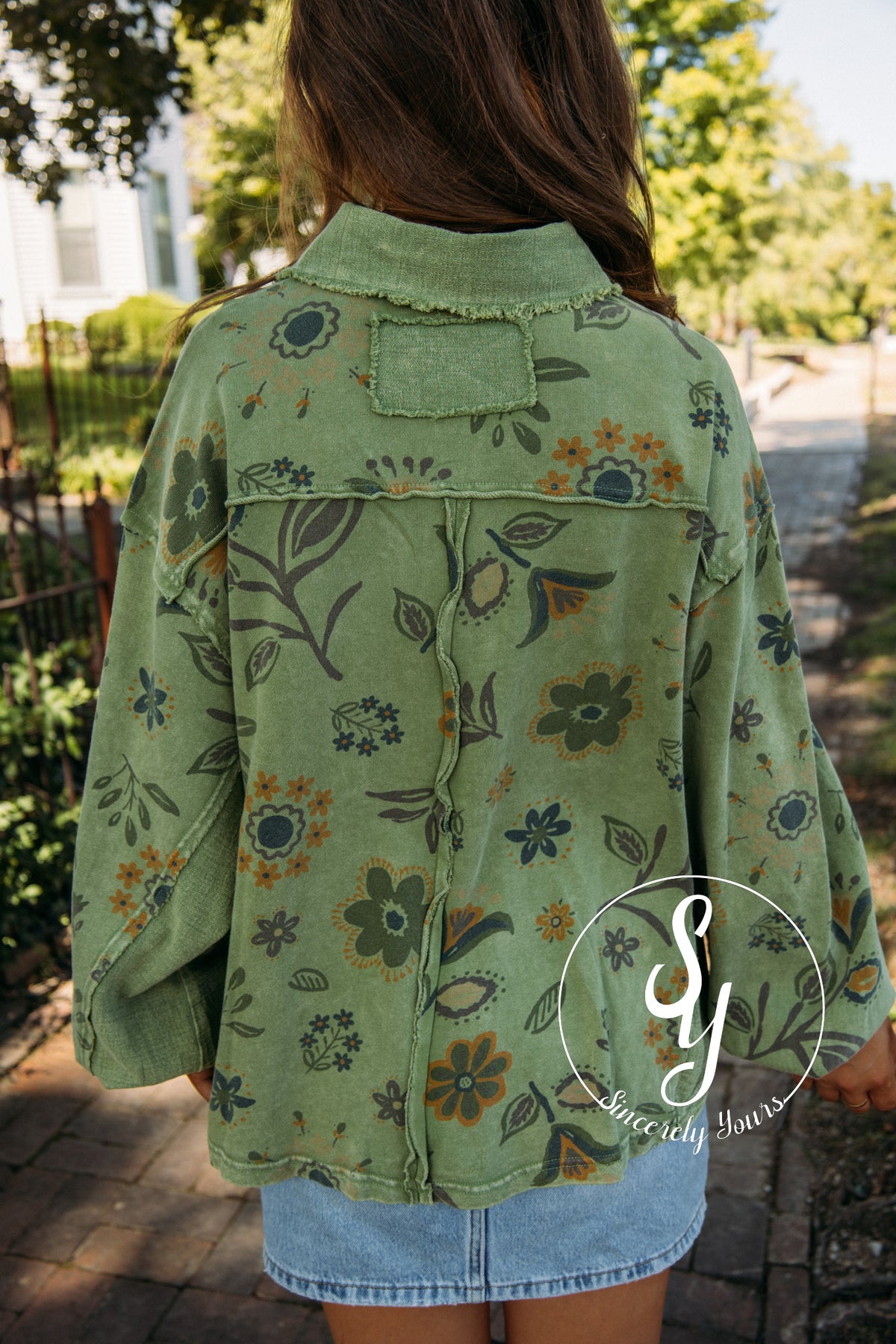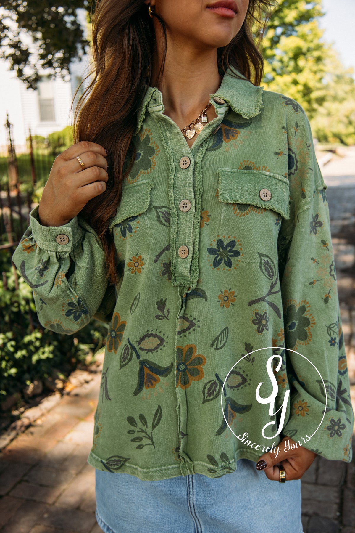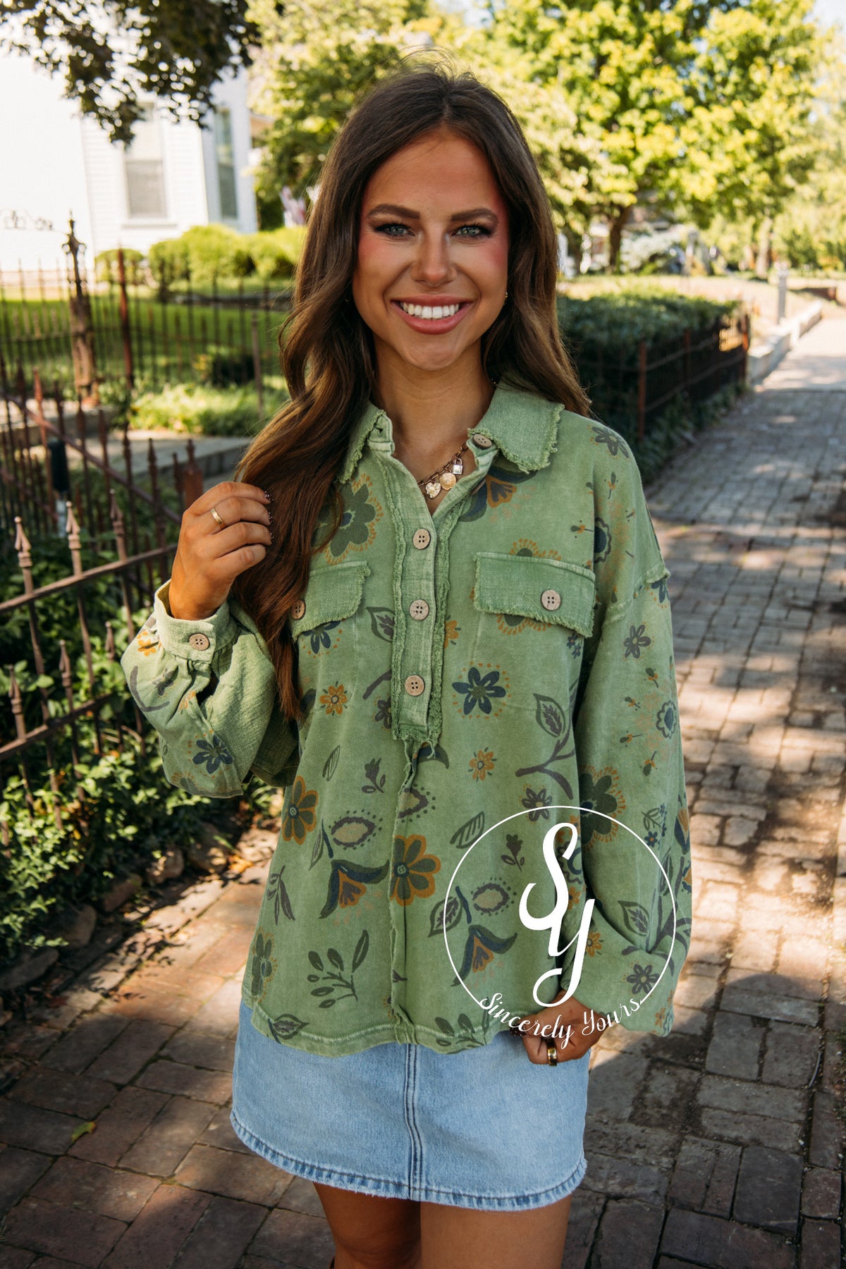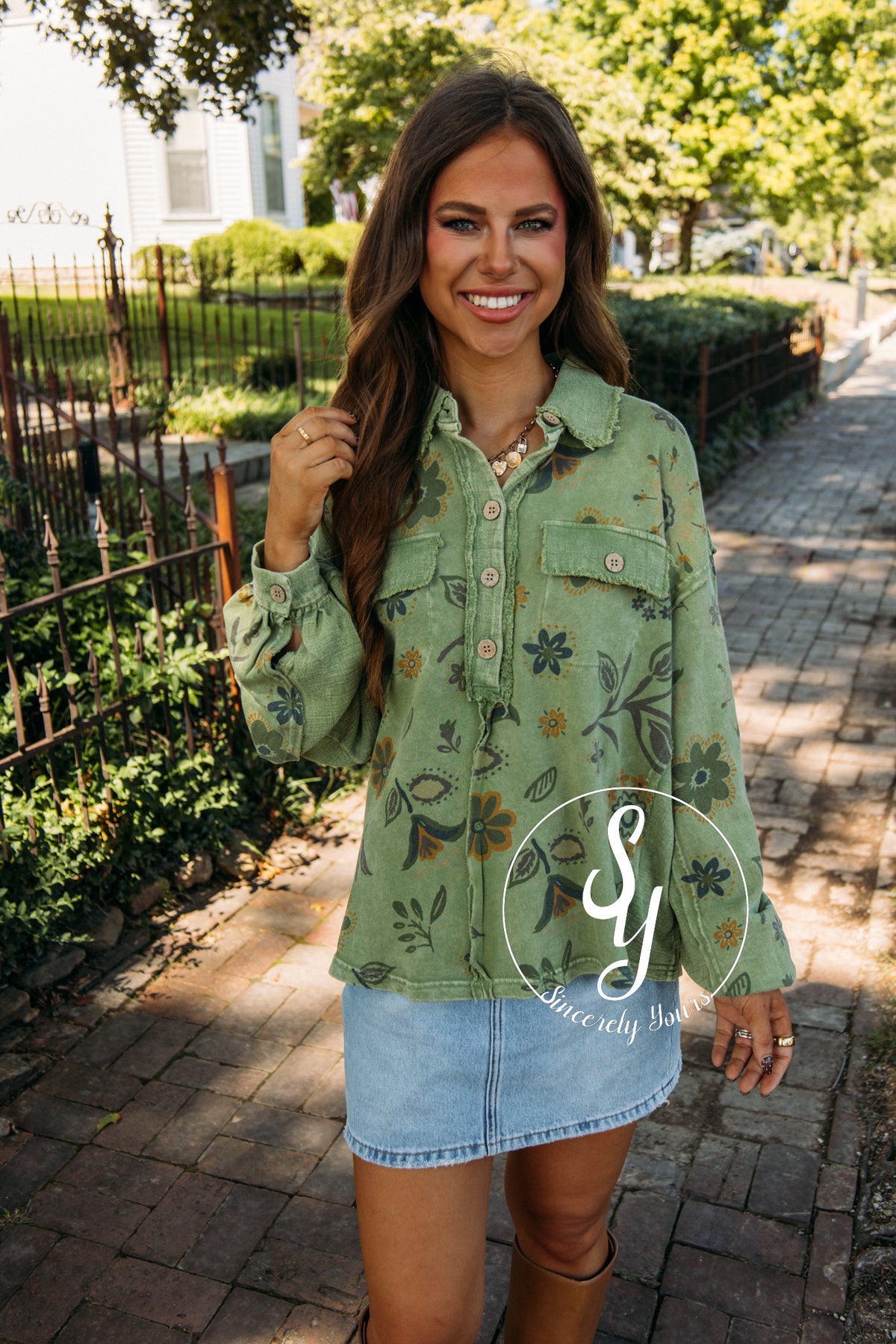 Brighten your wardrobe with the Field Of Flowers Top in Juniper Green. Its lively green shade and cheerful floral print make it a fun choice for any day. Comfortable and charming, this top lets you embrace a fresh, playful style effortlessly.