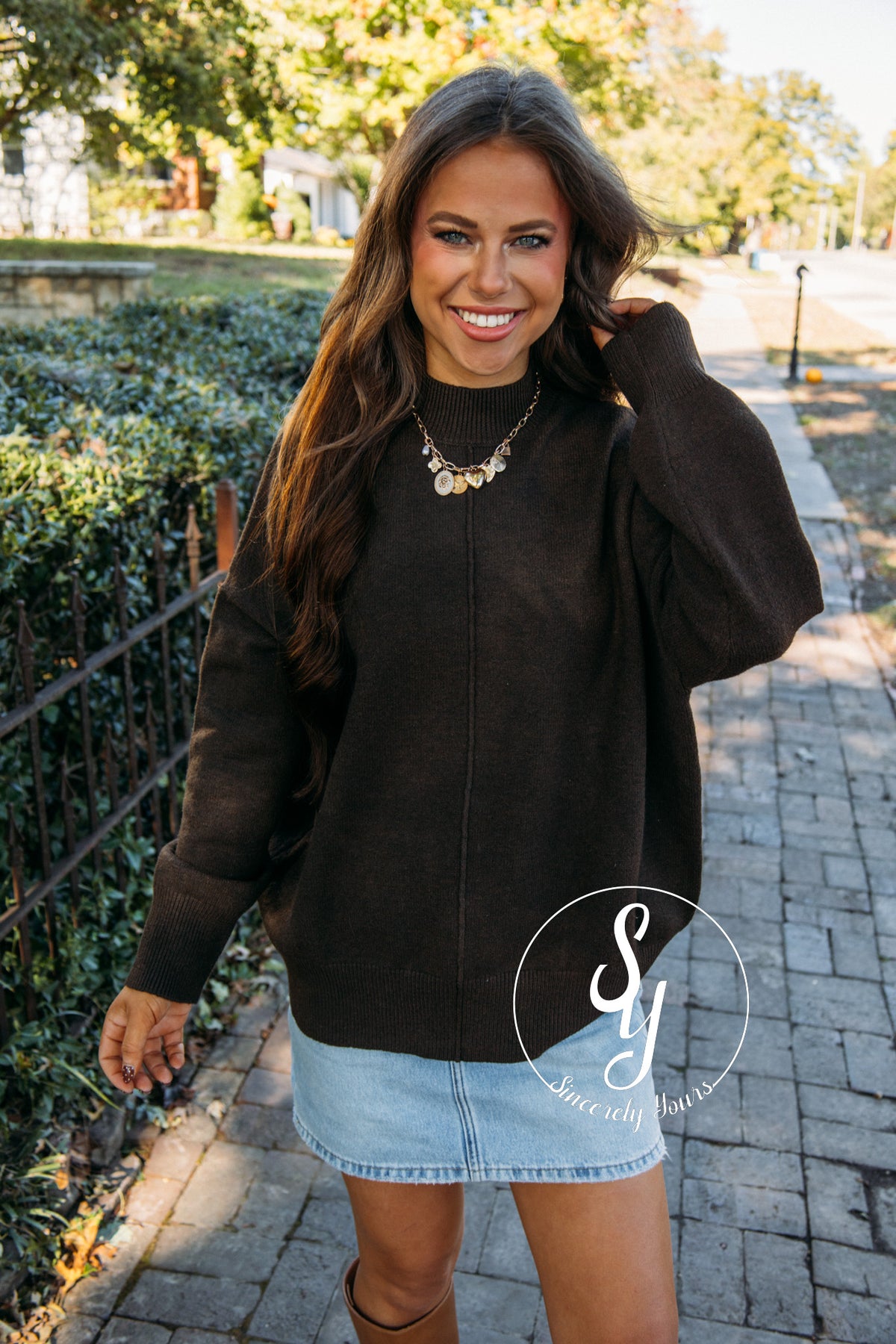 Wrap yourself in charm with the First Pick Sweater in Brown. Its eye-catching exposed seam adds an unexpected twist that makes this cozy piece stand out. Perfect for layering or wearing solo, it’s as comfy as it is cute—ready to become your new favorite go-to!