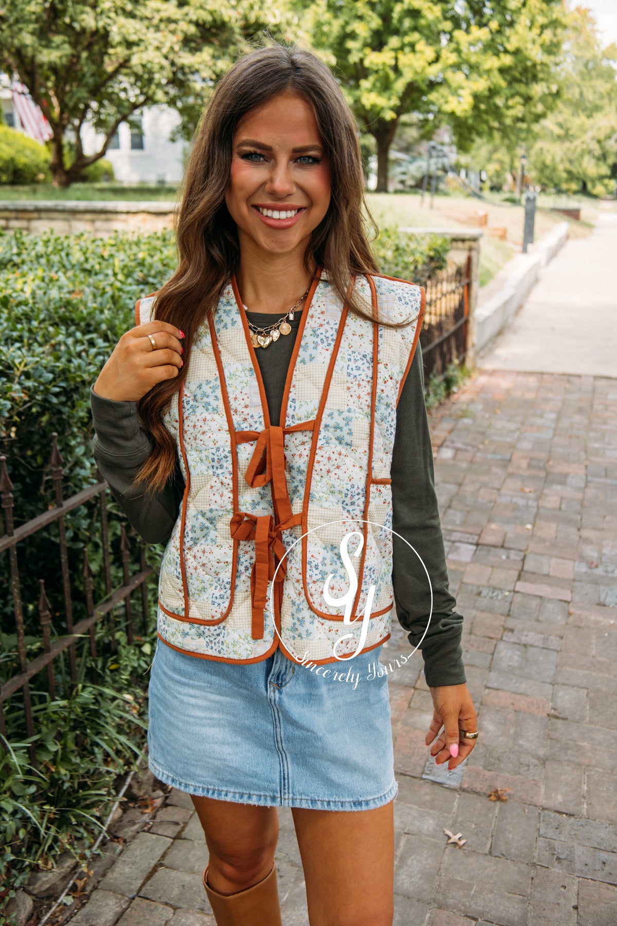 Embrace cozy charm with the Living The Floral Life Vest in Caramel Sepia Multi. Its puffer style offers warmth and style, while the playful tie detail adds a flirty touch. Perfect for layering, this vest brings a lively pop of floral fun to any outfit. Stay snug and stylish all day long!