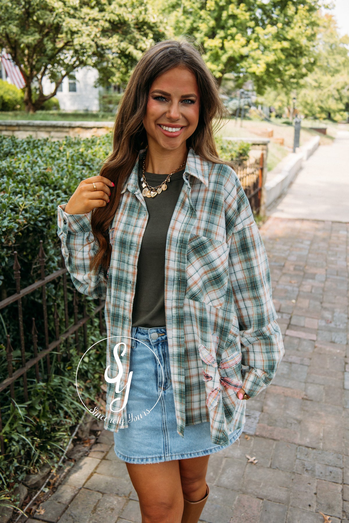 Add a pop of playful charm to your wardrobe with the Plaid Life Blouse in Green Combo. Featuring vibrant floral accents, this top is perfect for layering and brightening up any outfit. Its lively patterns and fresh colors make it a fun, easy way to express your personal style every day.