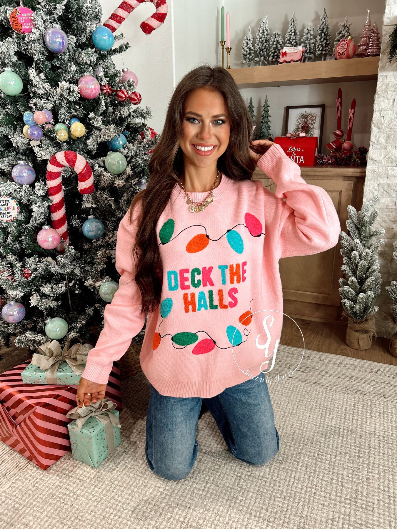 Wrap yourself in holiday cheer with this delightfully soft Deck The Halls Sweater! Available in a lovely light pink shade, this cozy knit brings festive flair to your seasonal wardrobe. The plush fabric feels amazing against your skin, making it perfect for lounging by the fire or spreading joy at holiday gatherings. Whether you're decking the halls or just staying cozy, this sweater is sure to become your new favorite go-to piece.