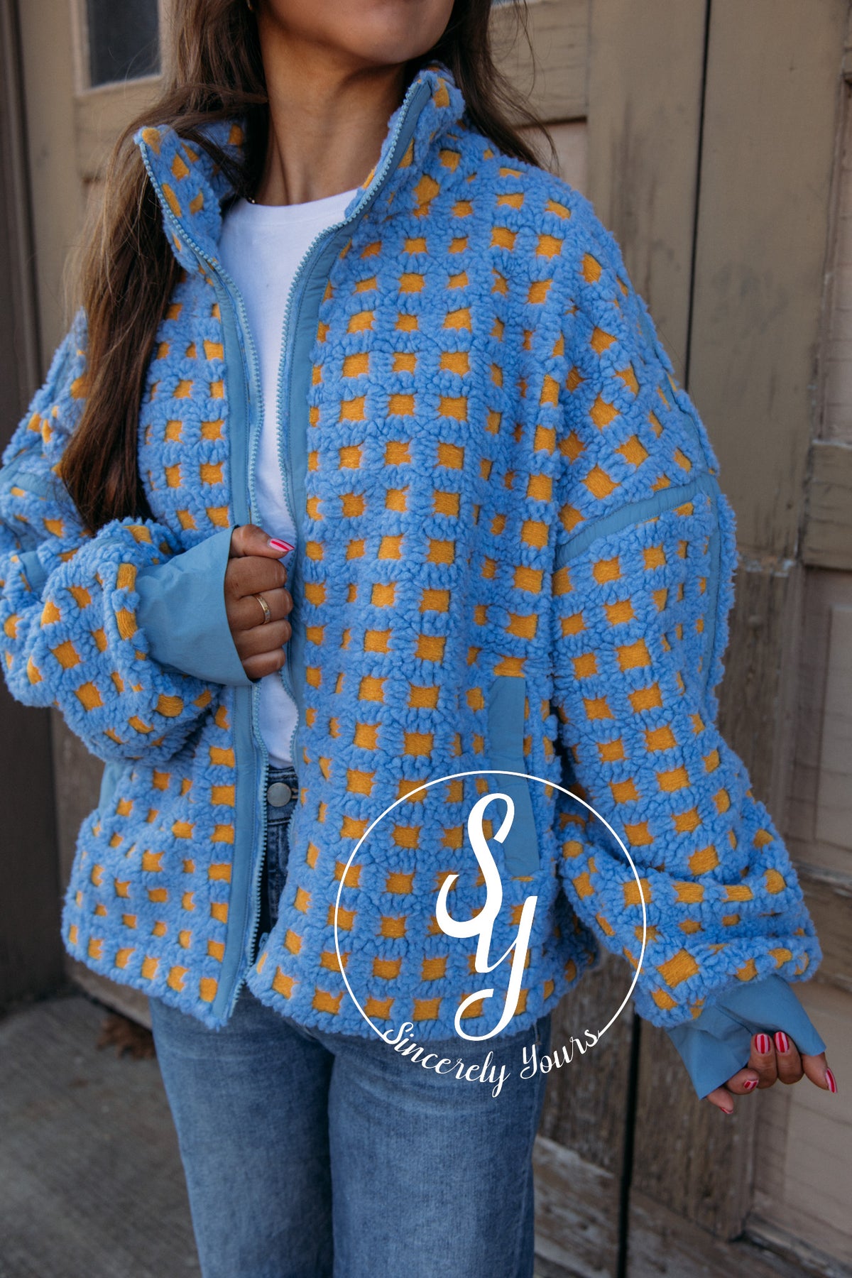 Wrap yourself in pure comfort with this Fashion Forward Coat in a vibrant blue and yellow colorway. Designed for those who refuse to compromise between style and coziness, this piece brings playful energy to your everyday wardrobe. The soft, inviting fabric keeps you warm while the bold color combination makes a statement wherever you go. Perfect for adding personality to your cold-weather rotation.