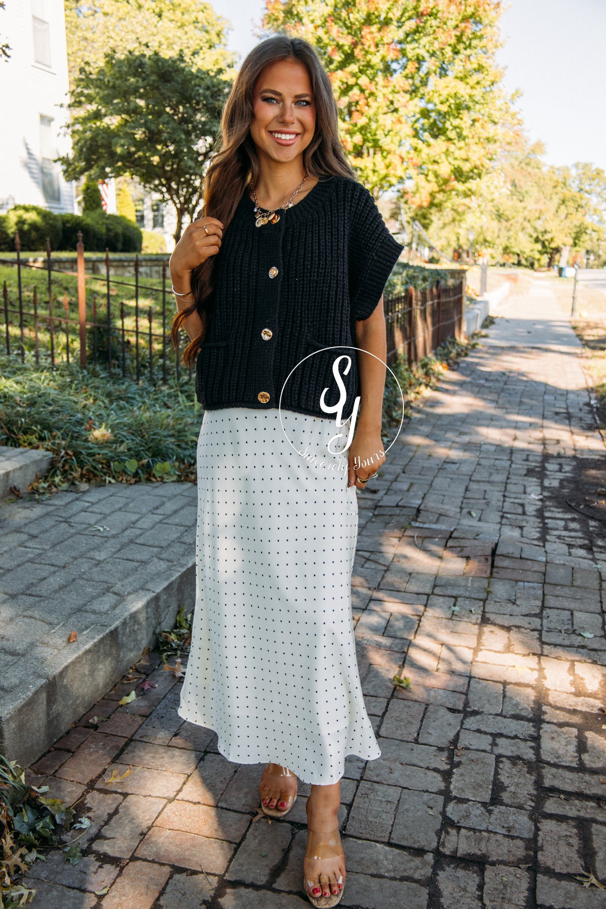 The Envy Skirt in Off White and Black is irresistibly charming with its playful polka dots and sleek silhouette. Perfect for adding a touch of fun and sophistication to any outfit, this skirt effortlessly combines cute and chic in one flattering piece. Embrace the stylish vibes and let this skirt be the envy of every wardrobe!