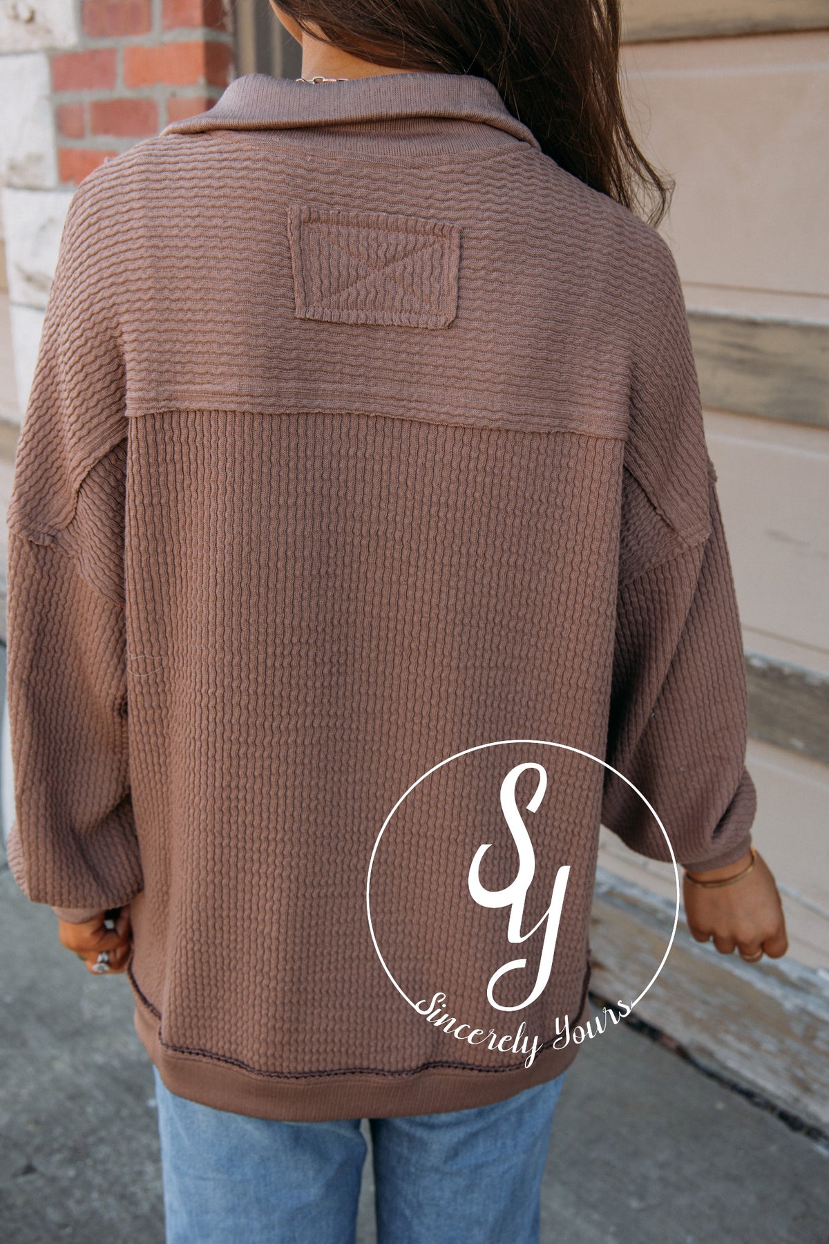 Wrap yourself in comfort with the Colorado Cozy Pullover in rich mocha. This pullover delivers the perfect blend of softness and style, featuring a luxurious texture that feels as good as it looks. The warm, inviting mocha tone pairs effortlessly with any outfit, making it your go-to layer for cozy days at home or casual outings. Whether you're settling in with a book or running errands around town, this pullover keeps you feeling snug and looking great.