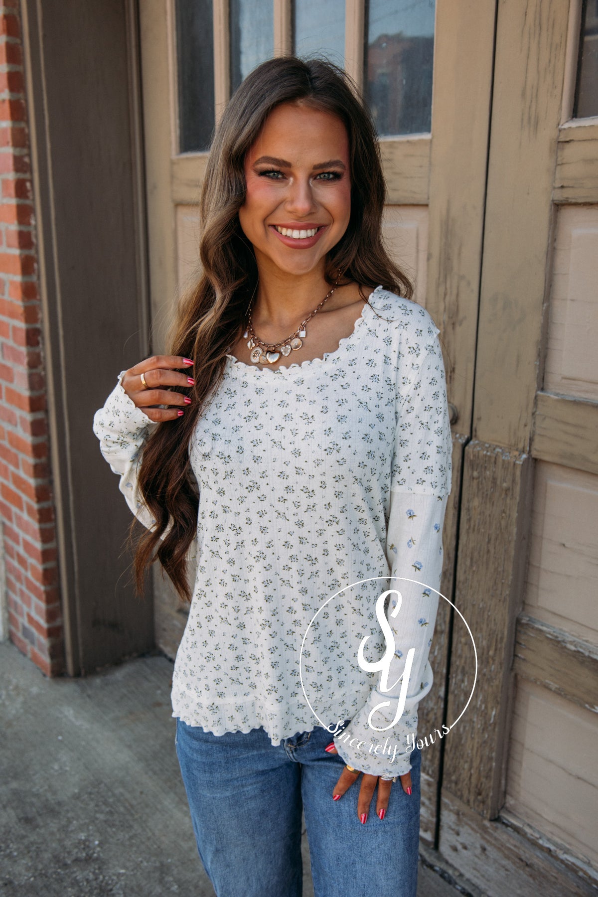 Embrace effortless style with this charming floral top that celebrates the beauty of simplicity. Delicate flower details dance across a soothing blue backdrop, creating a look that's both fresh and timeless. Perfect for those who appreciate understated elegance with a touch of nature-inspired whimsy, this versatile piece pairs beautifully with your everyday favorites. Whether you're heading out for brunch or a casual day around town, this top brings a cheerful, blooming energy to any outfit.
