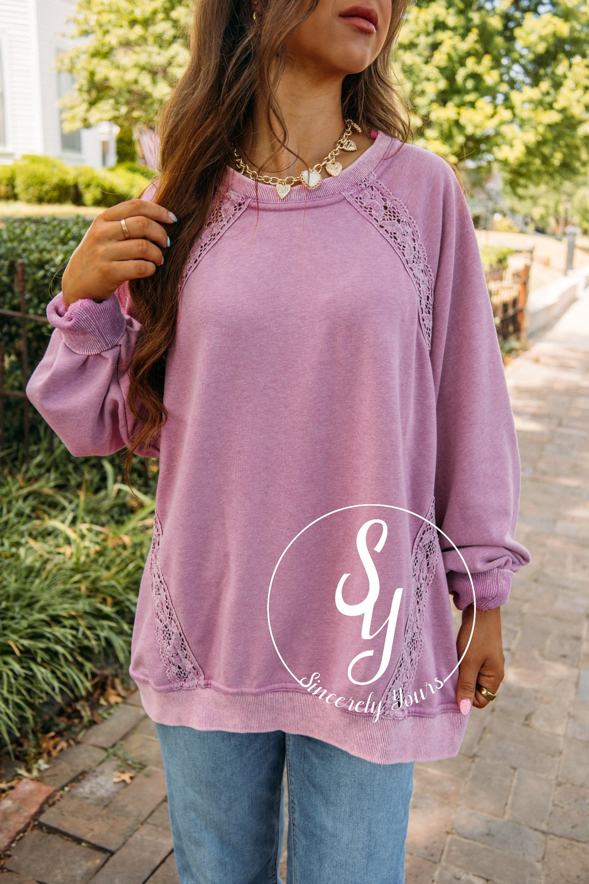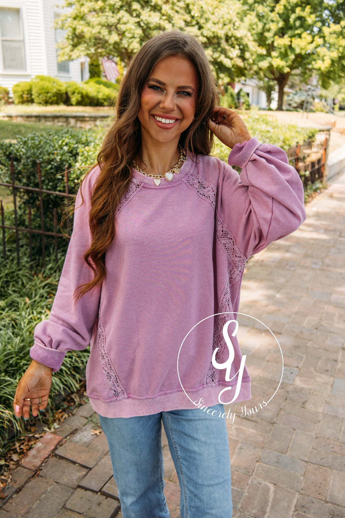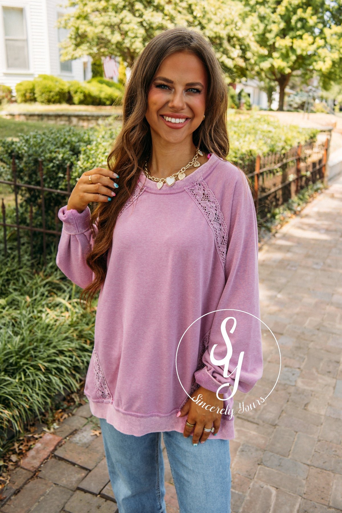 Elevate your everyday look with the Lynna Top in Orchid. This playful long-sleeve features delicate lace details that add a touch of charm and elegance. Perfect for layering or wearing on its own, it brings a flirty, feminine vibe to any outfit while keeping you cozy and stylish all day long!
