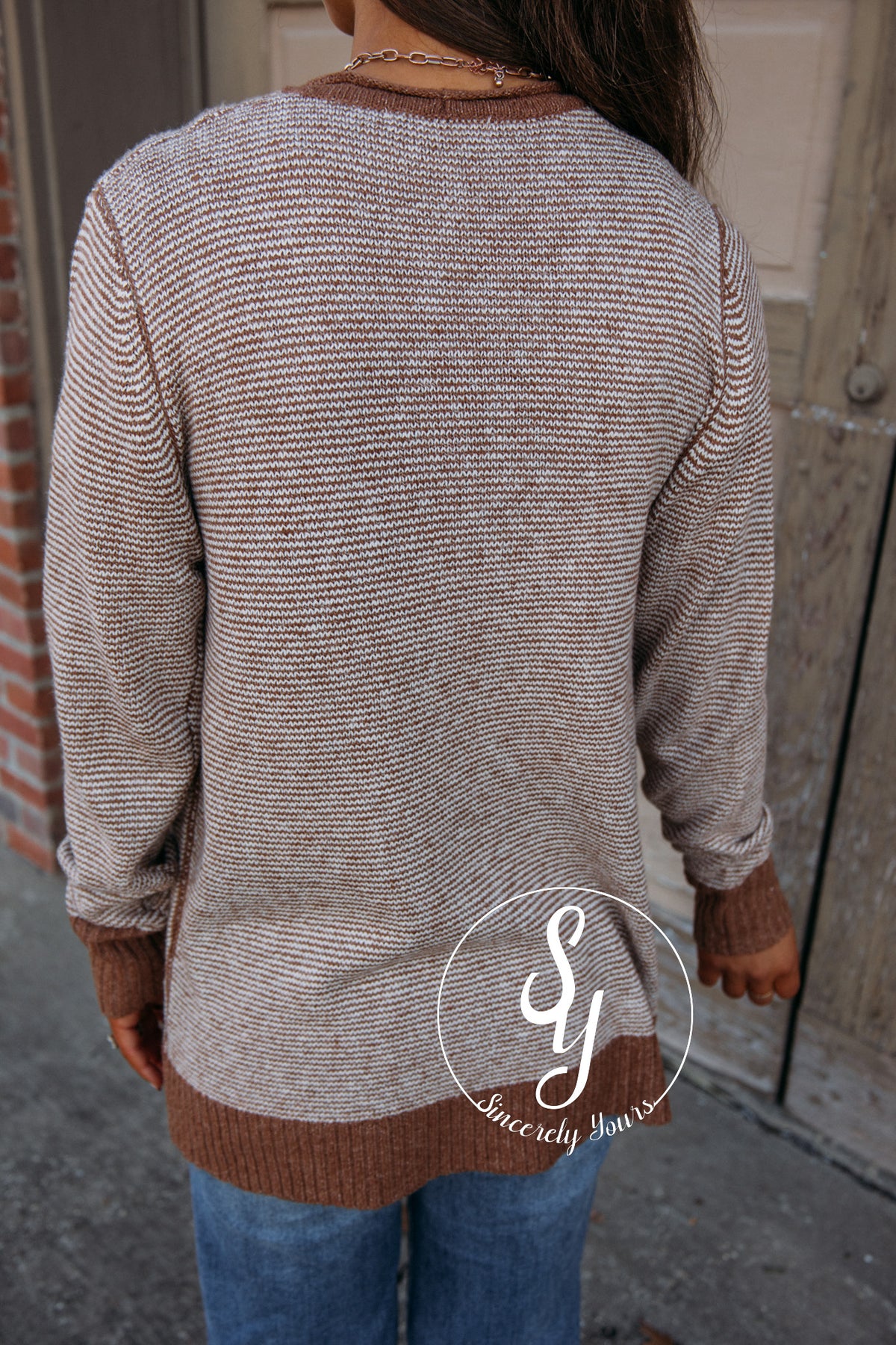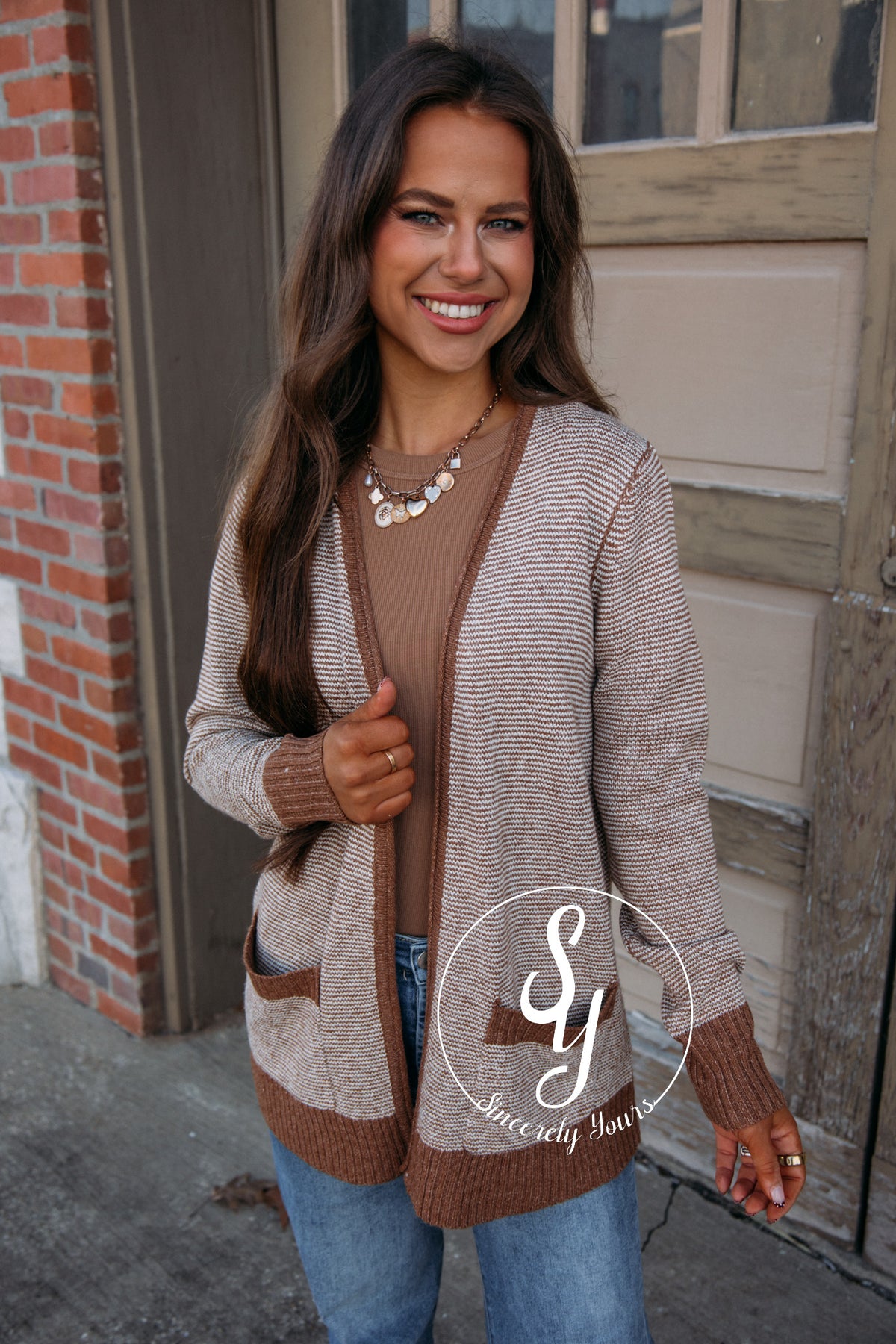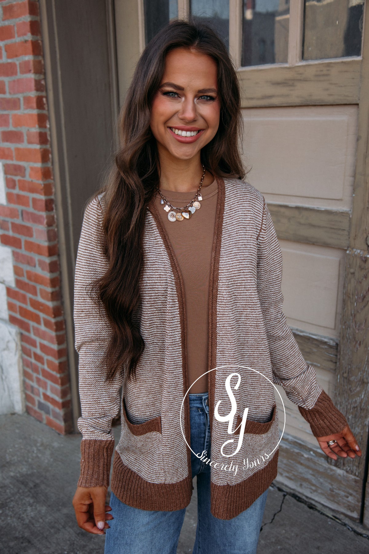 Wrap yourself in warmth and style with the Noel Striped Cardigan in a gorgeous camel hue. This adorable layering piece features charming stripes that add visual interest to any outfit, whether you're cozying up at home or heading out for a casual day. The soft, comfortable fit makes it perfect for layering over your favorite tees or dresses. From weekend brunches to cozy evenings by the fire, this striped cardigan is your go-to companion for effortless, cute style that works year-round.