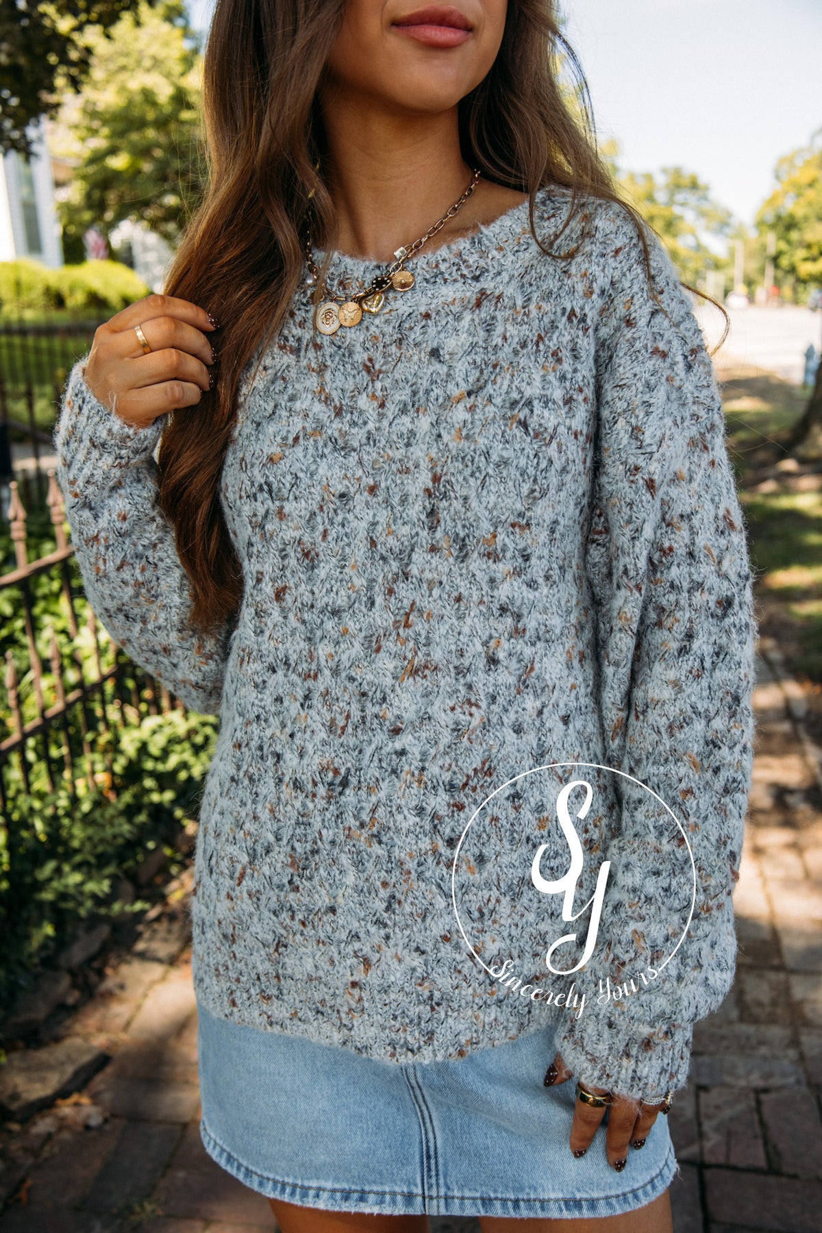 Wrap yourself in cozy charm with the Neutral Confetti Sweater in Grey Multi. Its soft, soothing colors create a calm and cheerful vibe, perfect for brightening any day. This playful sweater adds a touch of fun to your wardrobe while keeping you comfy and stylish.